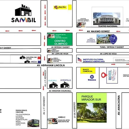 Der Botanische Garten von Santo Domingo ist etwa 2 km vom Hotel entfernt, während Palacio Nacional etwa 2,1 km von hier entfernt ist. Die nahe gelegenen Sportattraktionen sind Stadion Quisqueya (3 km) und Mehrzweckarena Palacio de los Deportes Virgilio Travieso Soto (2,2 km). Besuchen Sie den See Pool, in etwa 25 Gehminuten Entfernung vom Royal Palace, und fühlen Sie sich in völliger Harmonie mit der Natur von Dominikanische Republik. Auch Malecón ist in etwa 2,3 km Entfernung vom Hotel. Die Unterkunft ist in unmittelbarer Nähe von der U-Bahn-Station Francisco Alberto Caamano Deno, was sehr günstig ist.